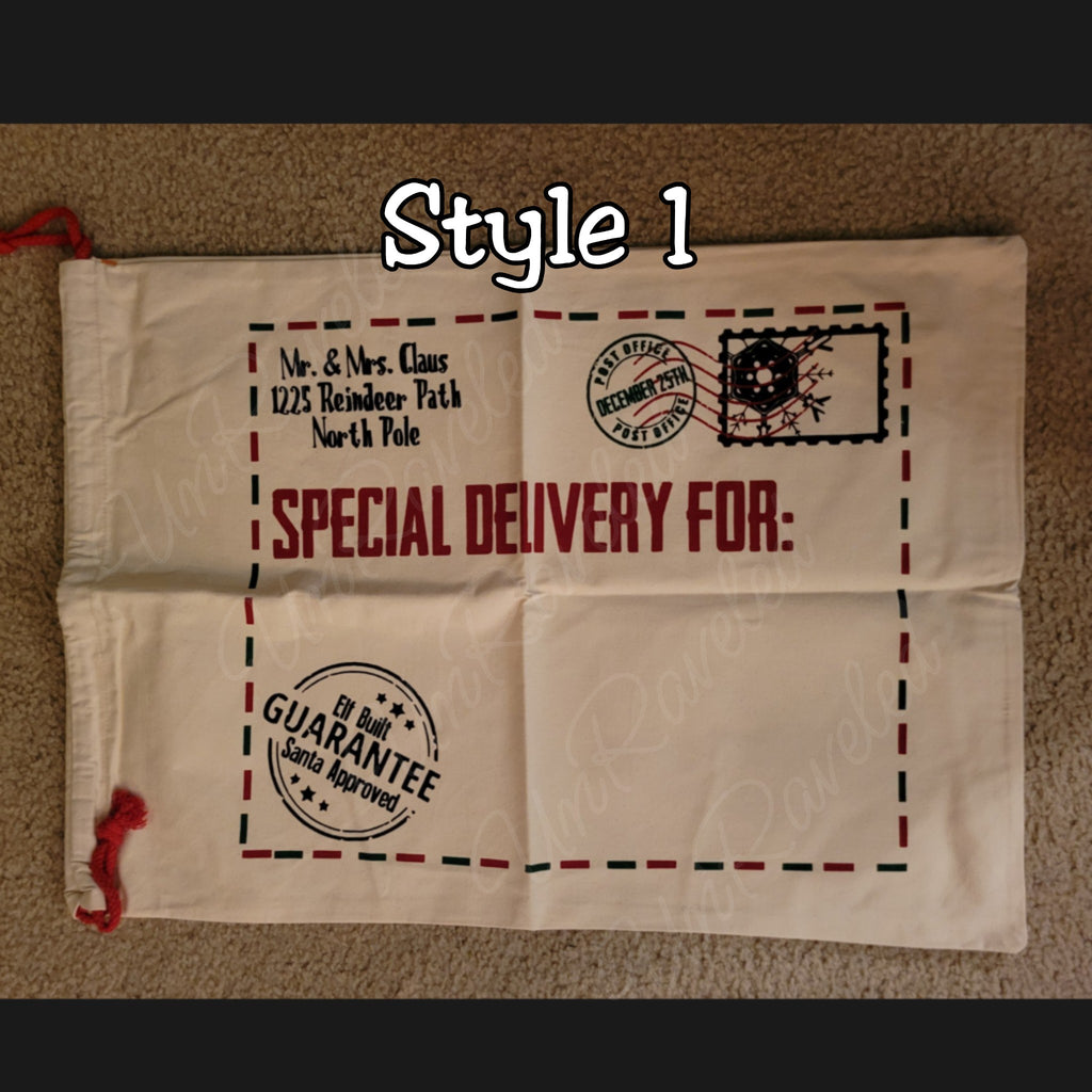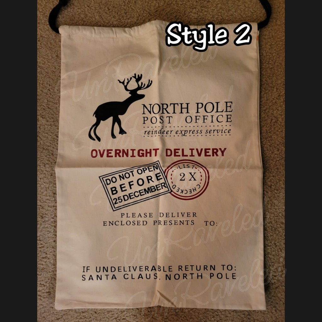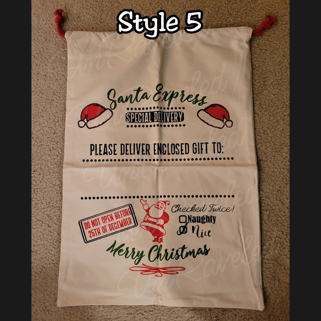 Add a touch of whimsy and character to your gift giving with our Santa Sacks! Personalize each sack, save on wrapping paper, and enjoy a reusable option delivered straight from the North Pole! Personalization is in red glitter.
